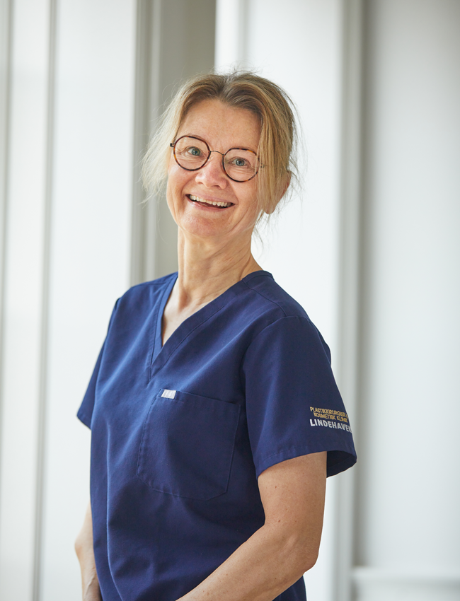 Louise er uddannet sygeplejerske i 2007. Hun har tidligere arbejdet på urologisk afdeling og operationsgang OUH fra 2007-2021. Ansat hos plastikkirurgisk klinik og Lindehaven siden 2021, hvor hun har arbejdet som kosmetisk sygeplejerske. Du møder Louise til kosmetiske behandlinger og på operationsgangen.